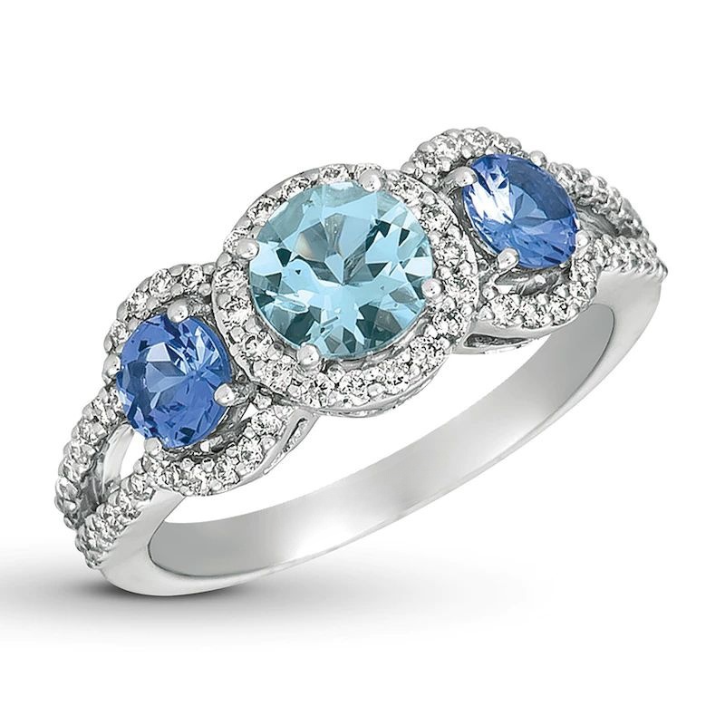 Multi-Gemstone and 1/5 CT. T.W. Diamond Ring in Sterling Silver and 10K Gold