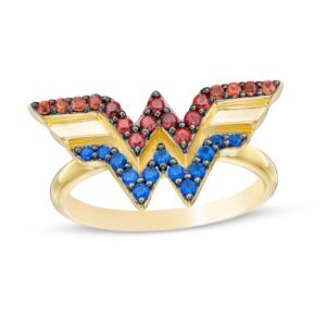 Garnet and Blue Sapphire Tiara Ring in 10K Gold