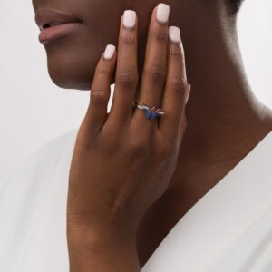 Blue Sapphire, Garnet and Diamond Tiara Ring in Sterling Silver and 10K Gold