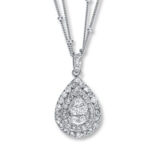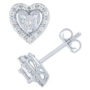 A stunning diamond dances with every move at the center of this gorgeous women’s heart necklace from the collection. Additional round diamonds frame the heart-shaped pendant, giving the necklace a total diamond weight of 1/3 carat. The 10K white gold pendant sways from a 19-inch curb chain and secures with a lobster clasp.